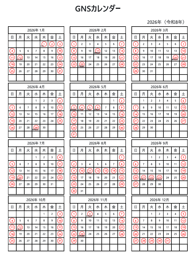 2021年の営業日カレンダーを公開しました